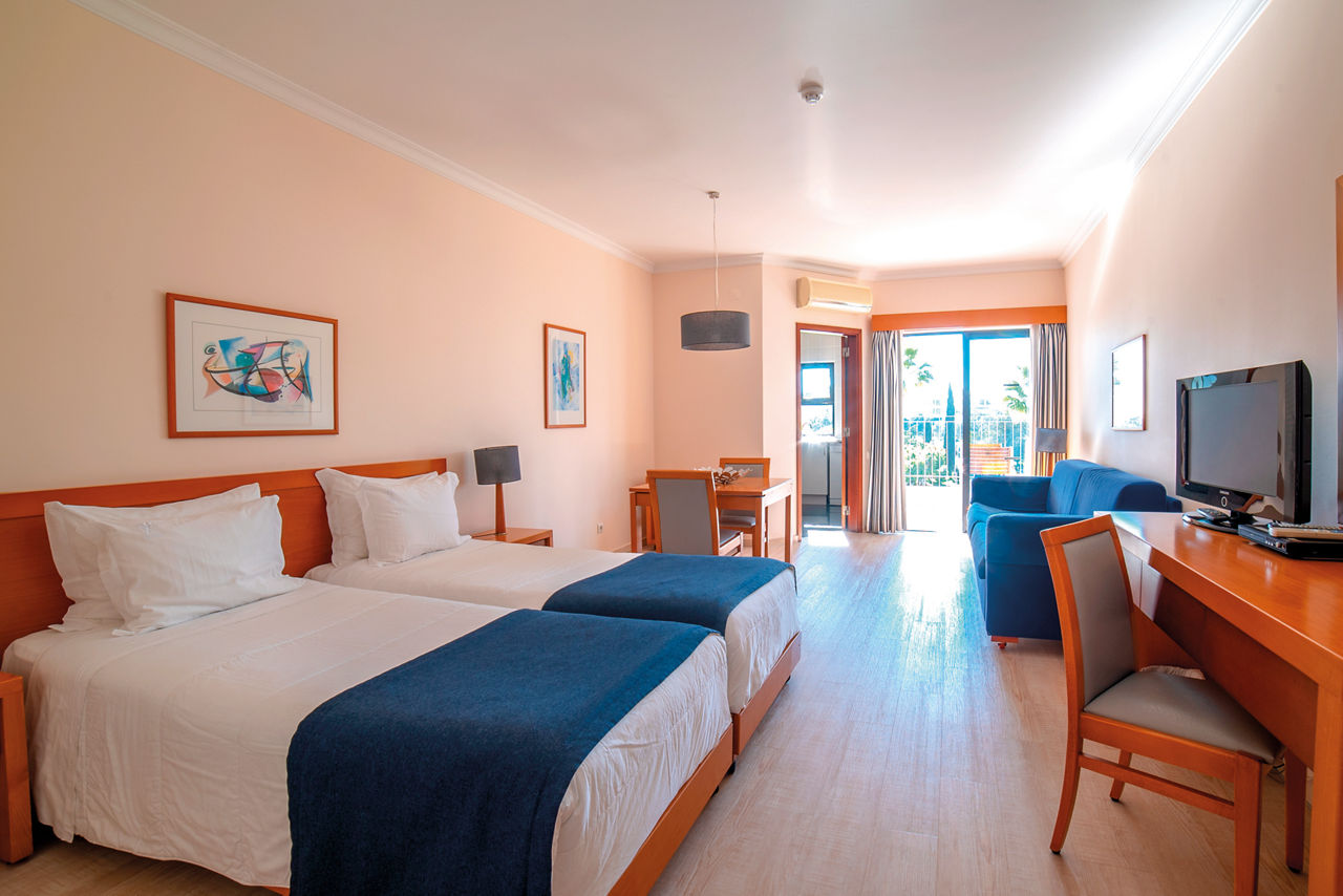 If you are looking to be spoilt for choice for bars and restaurants at night time, but need a relaxing accommodation to unwind in the daytime, look no further than Vila Petra Aparthotel. The vibrant green gardens are a great space for enjoying the sun with a book in one hand and a drink in the other. With spacious studios and apartments to make you feel at home for your holiday, you will be able to rest knowing that the friendly staff will be on hand when you need. After fun-filled nights, you may wish to head into Albufeira Old Town for a chilled out daytime to make the most of the shops and activities on offer.Studios sleep up to 2 adults and 1 child and have bathroom containing a bath with shower attachment, air conditioning, hairdryer, flat screen television, double cooking rings, fridge, microwave, oven, tea and coffee making facilities, toaster and balcony or terrace. One Bedroom apartments sleeping up to 4 are also available.