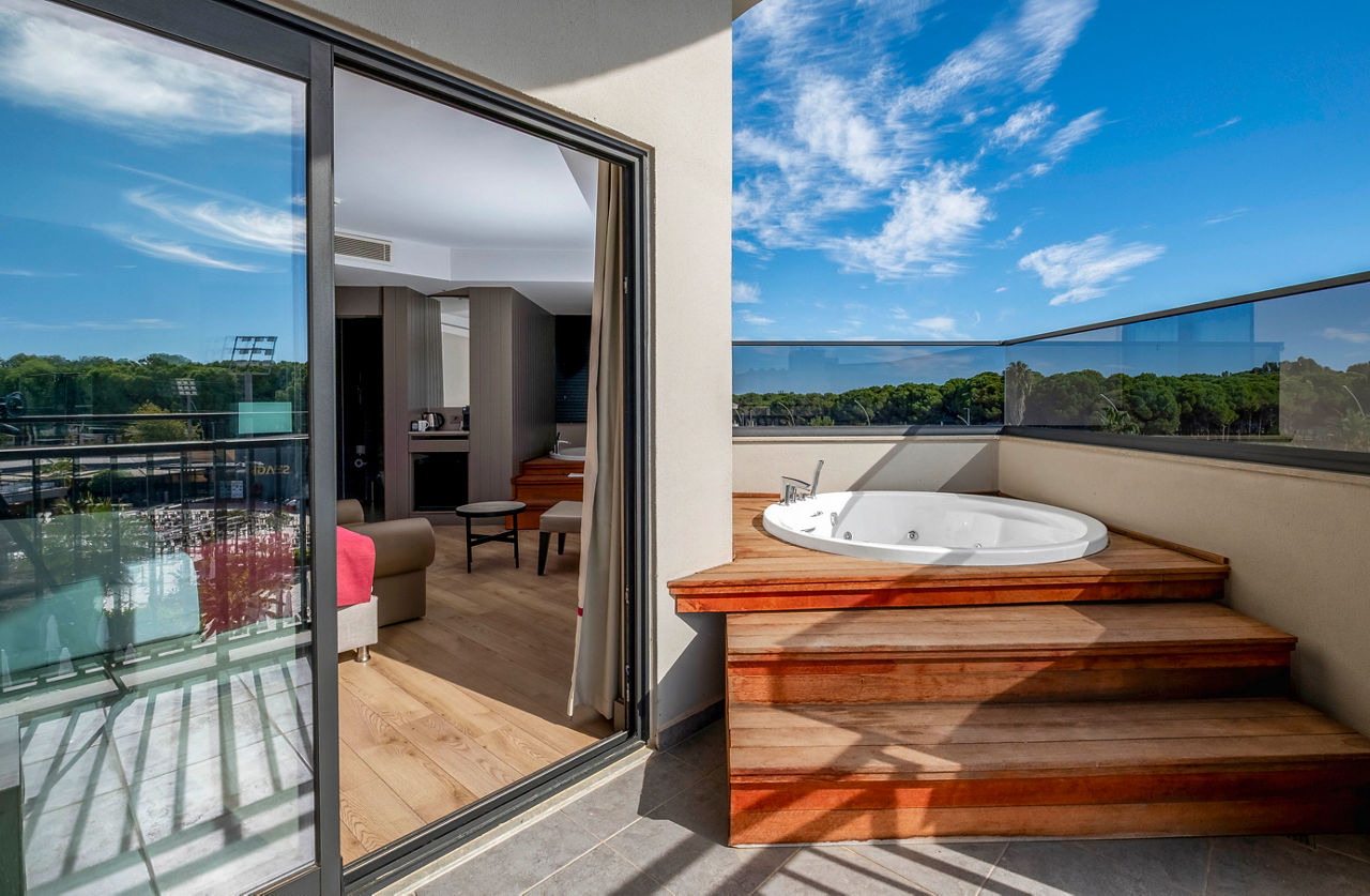 1km from nearest shops, bars and restaurants. 350m from nearest bus stop. 2.5km from the nearest beach (complimentary shuttle service). 4.6km from Belek resort centre.