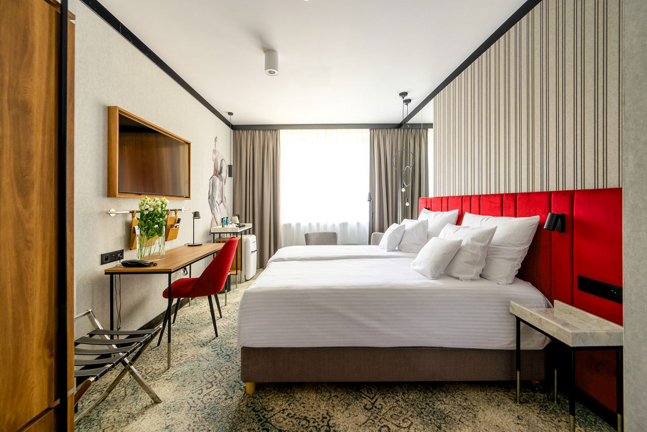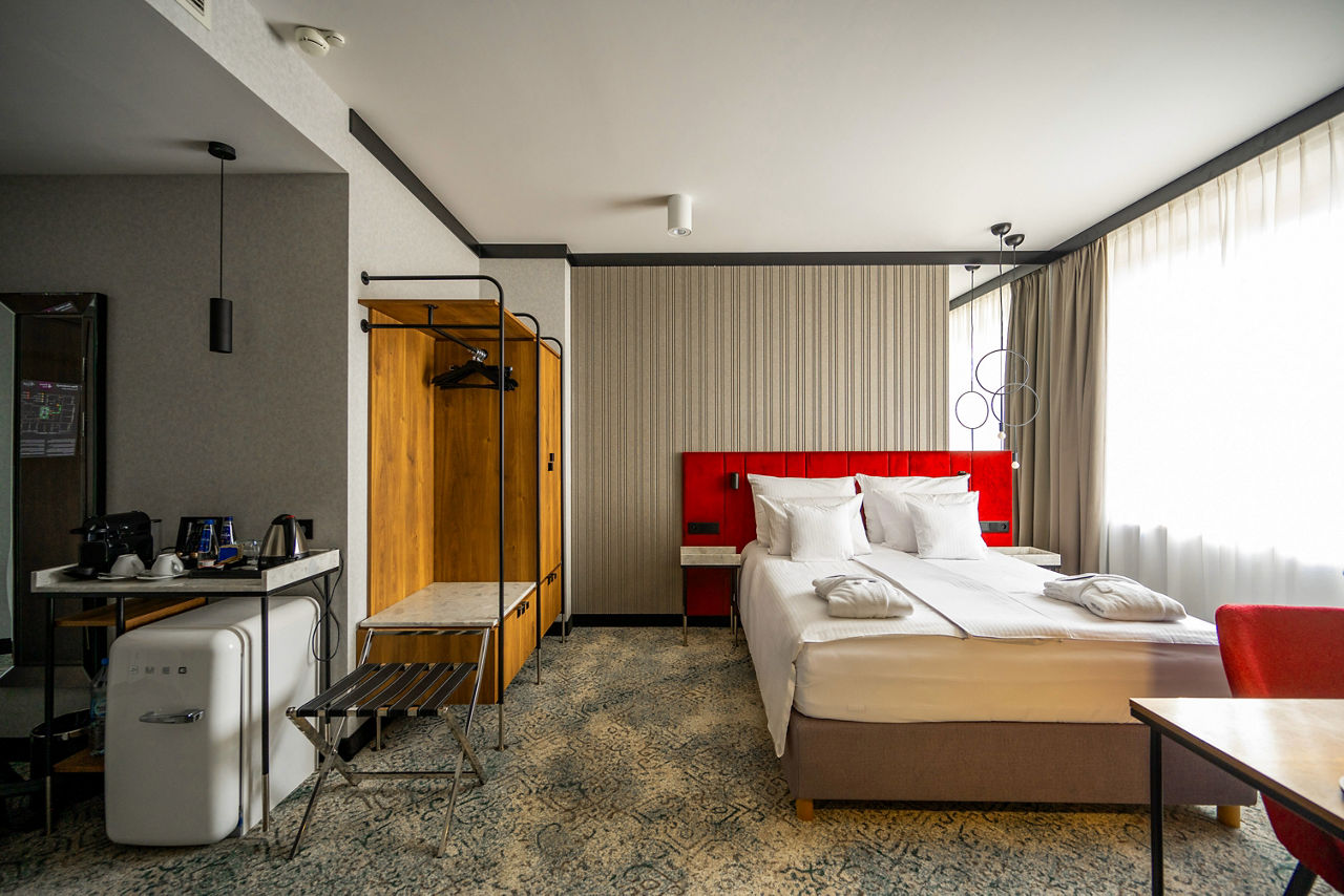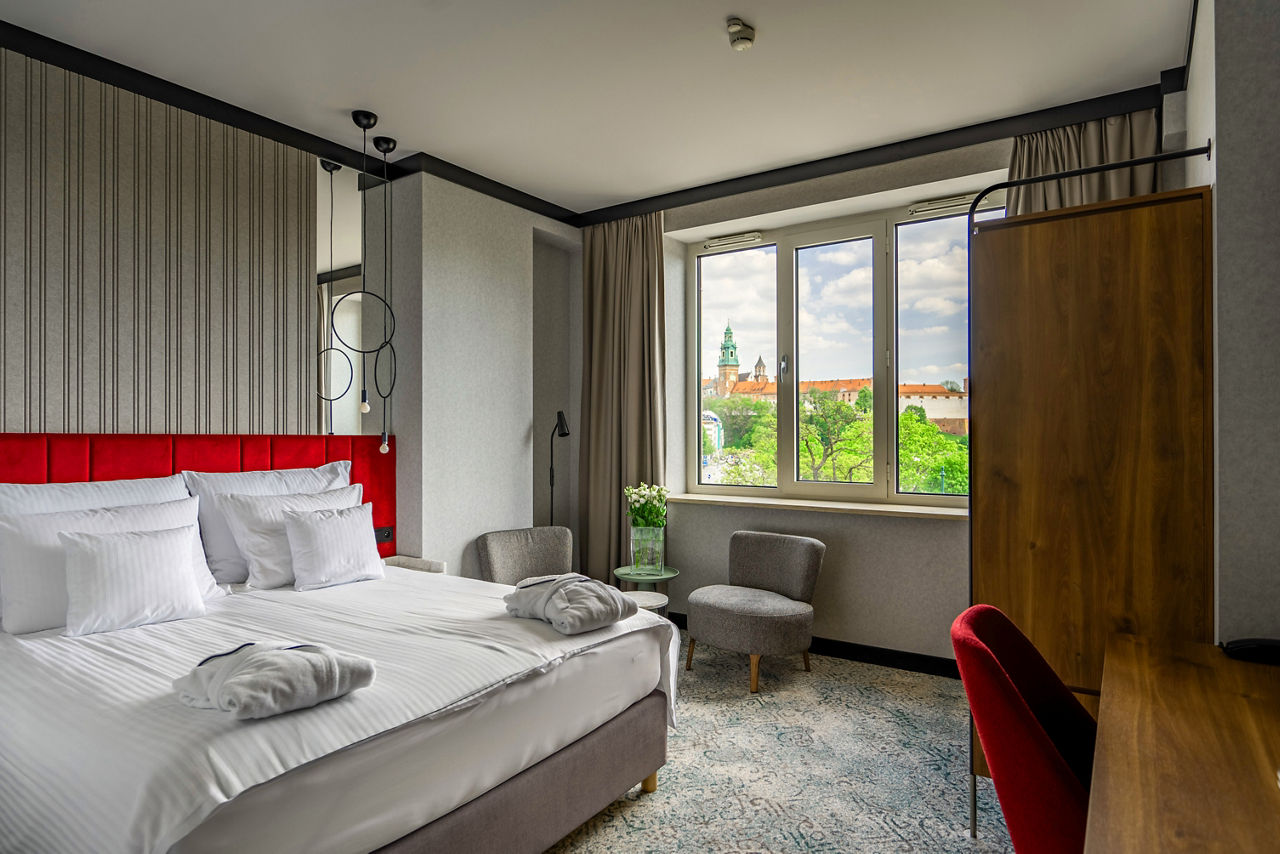 Check into the comfortable Hotel Kossak, then explore all that the remarkable city of Krakow has to offer. When it comes to postcodes, it doesn?t get much better than this. Hotel Kossak puts you in prime position for sightseeing, just a stones throw from the bustling Main Market Square and a short stroll from whimsical Wawel Castle. As it?s four star and fabulous, expect facilities including cosy and colourful rooms, a gym and even bike hire! What?s more, Hotel Kossak has two great restaurants. Caf? Oranzeria Restaurant is on the rooftop and offers amazing views across the iconic city skyline ? it?s spectacular to say the least.Standard Double or Twin rooms sleep 2 adults and have a bathroom with shower, hairdryer, air conditioning, TV, tea and coffee making facilities and mini-bar. Rooms for sole use are also available.