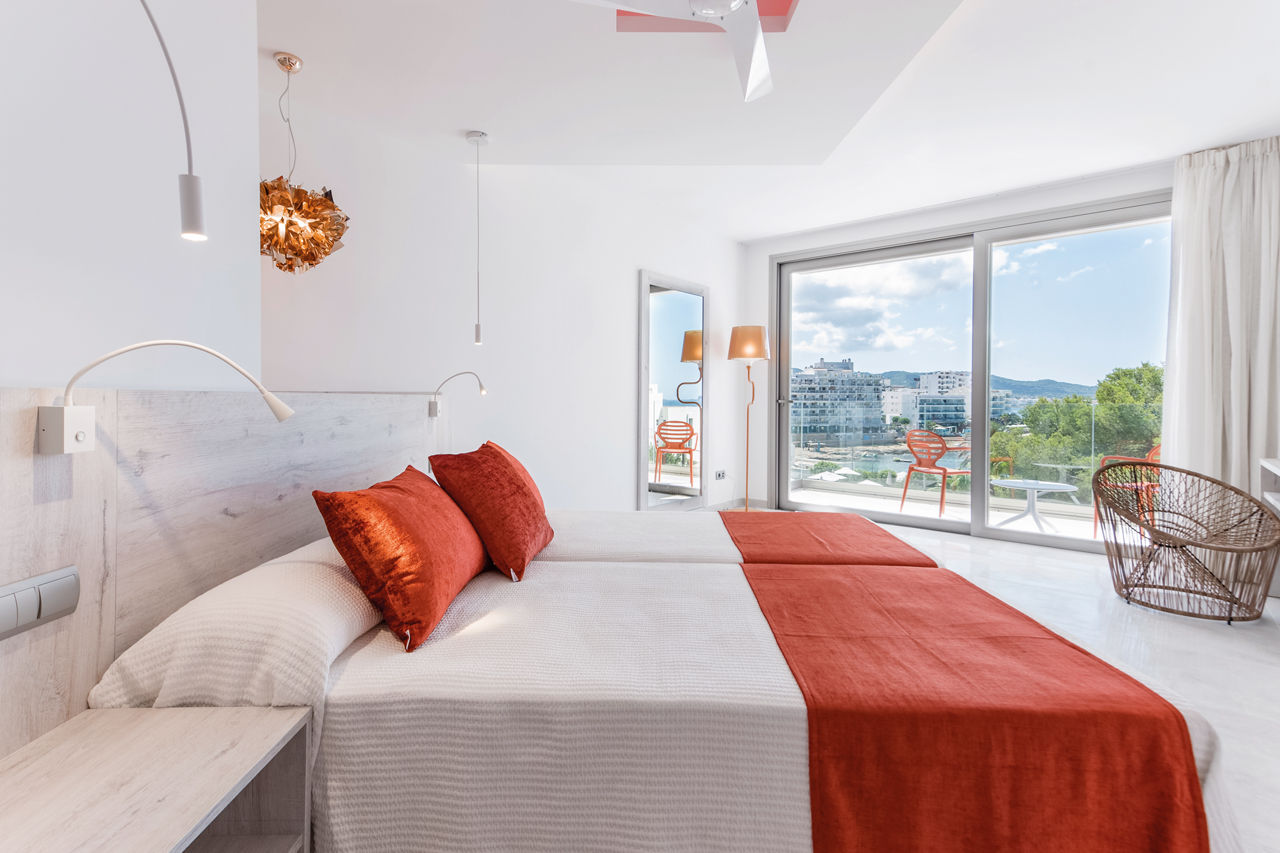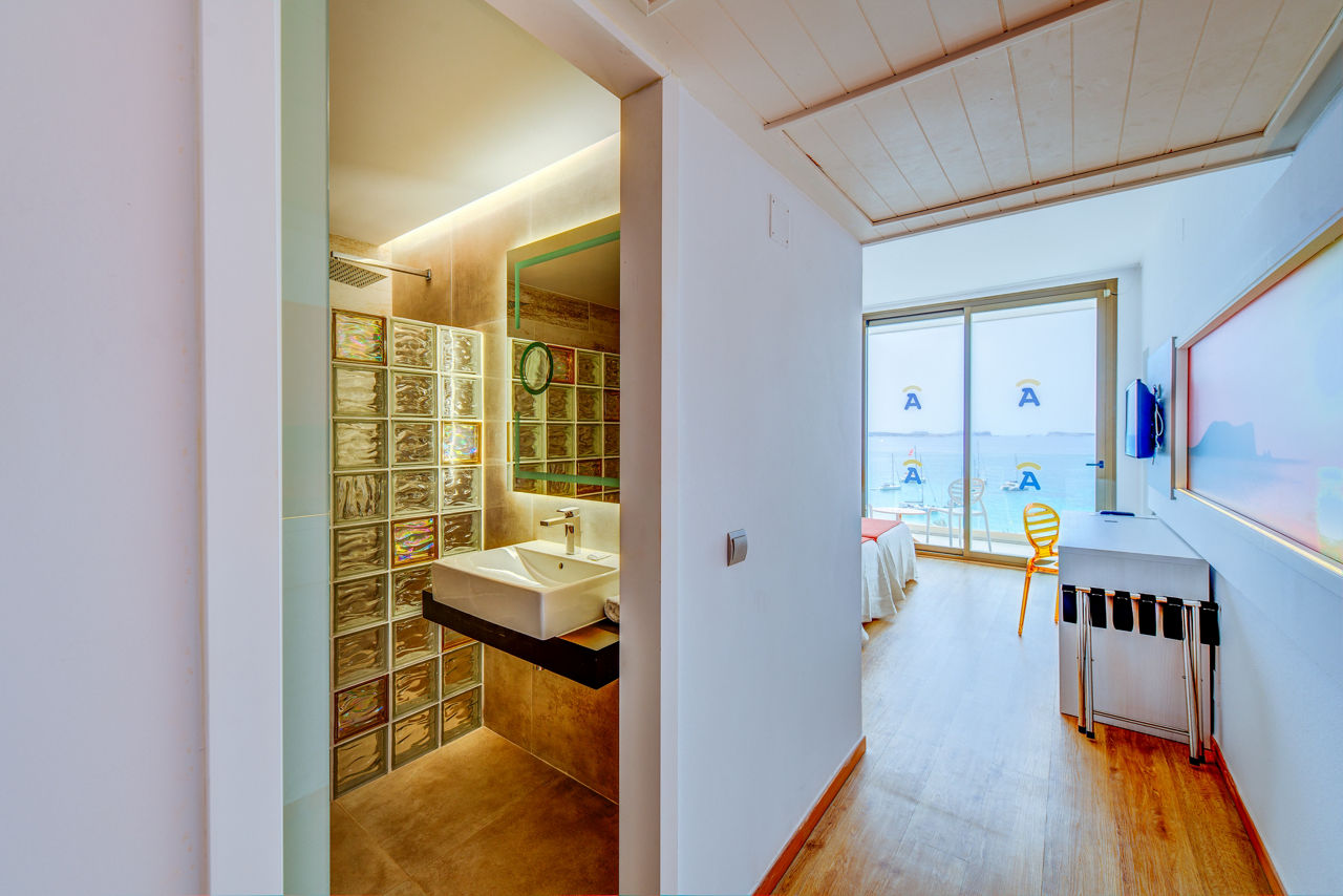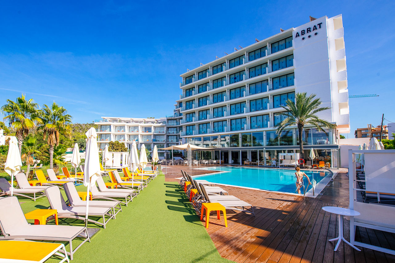 The family-run Hotel Abrat is decorated in a bright and modern style. The rooms feature large bathrooms and excellent views. Set in an ideal location in a peaceful area, but within easy reach of all the action San Antonio has to offer, the hotel has broad appeal and attracts both couples and families. Families will enjoy the friendly atmosphere, plus there is a small sandy beach just a short walk away. Couples looking for a relaxing break but wanting to enjoy San Antonio by night will also enjoy this hotel. Located at the end of the sunset strip, you don't have to walk far to famous bars like Cafe Mambo, in fact you can enjoy the stunning sunset views from the hotel's rooftop terrace!Double rooms sleep up to 3 adults and have bathroom containing a bath with shower attachment, air conditioning, flat screen television, fridge, kettle and balcony. Room upgrade options are also available.