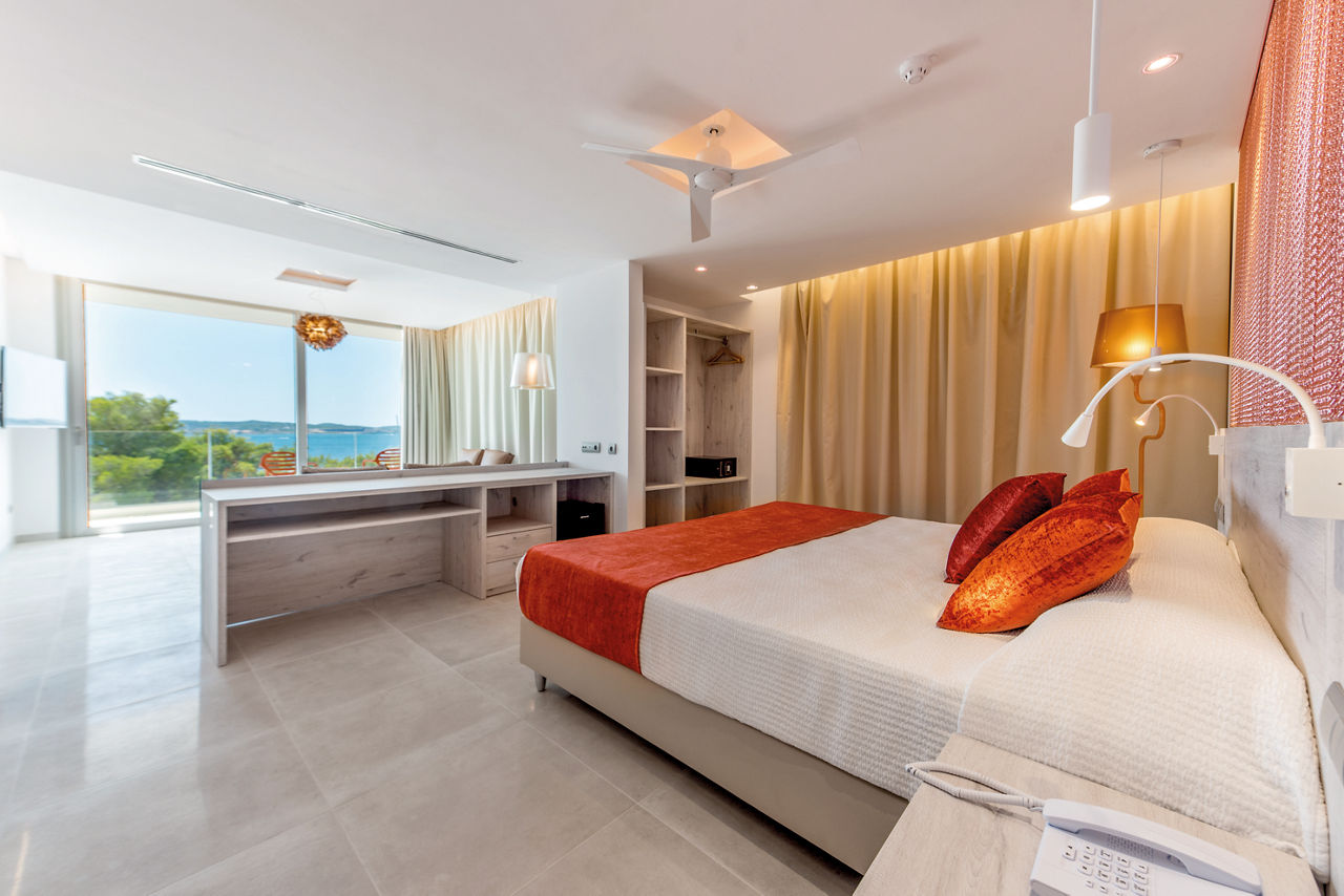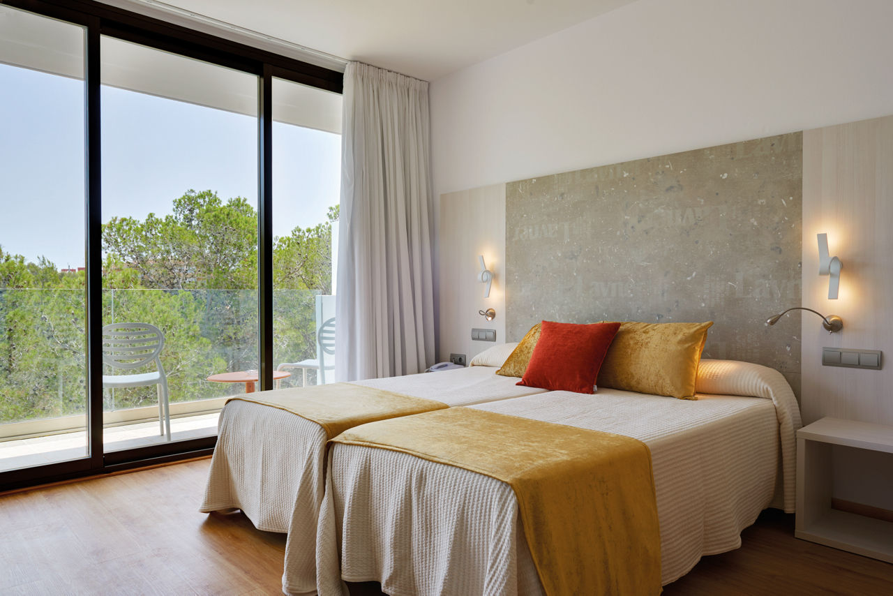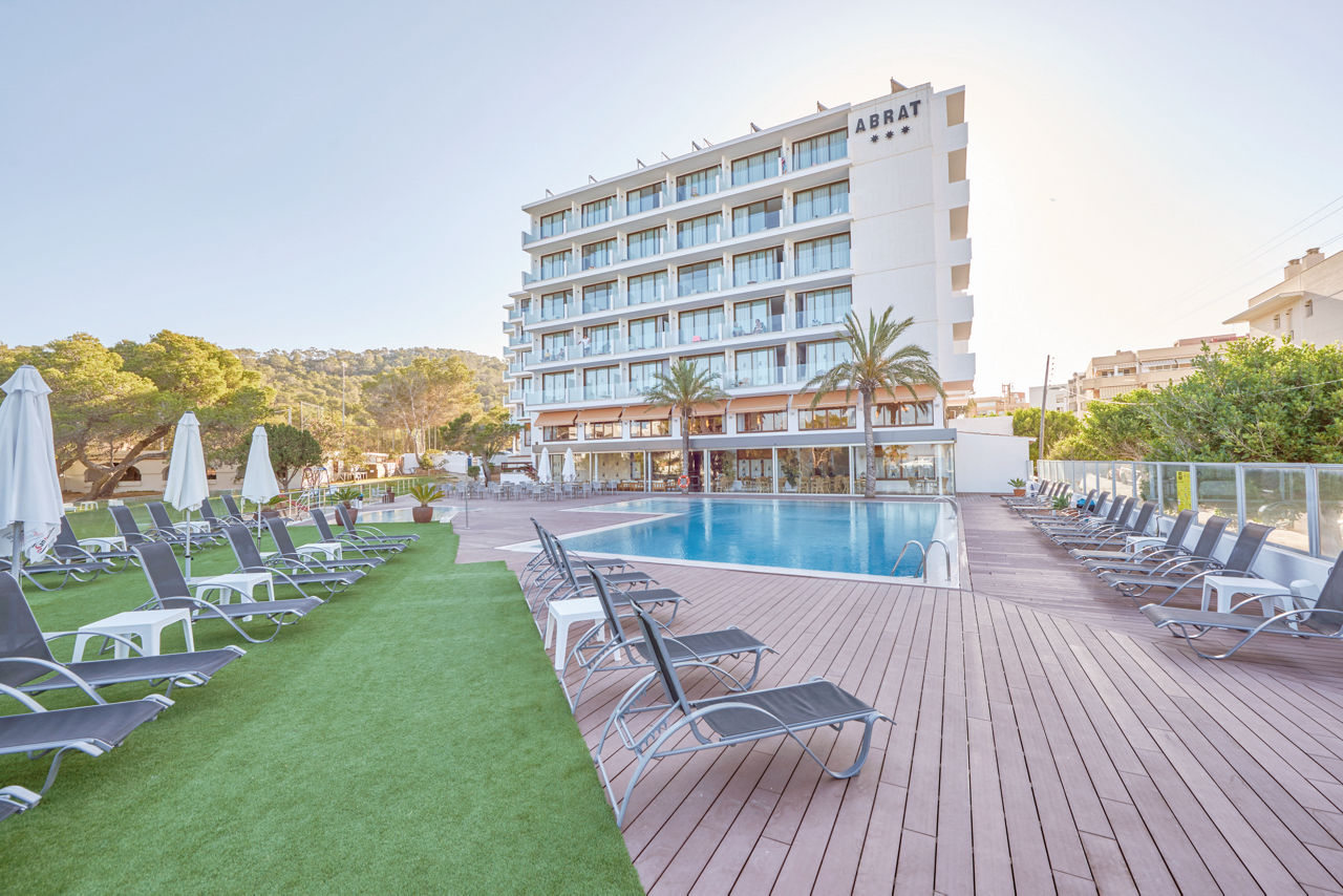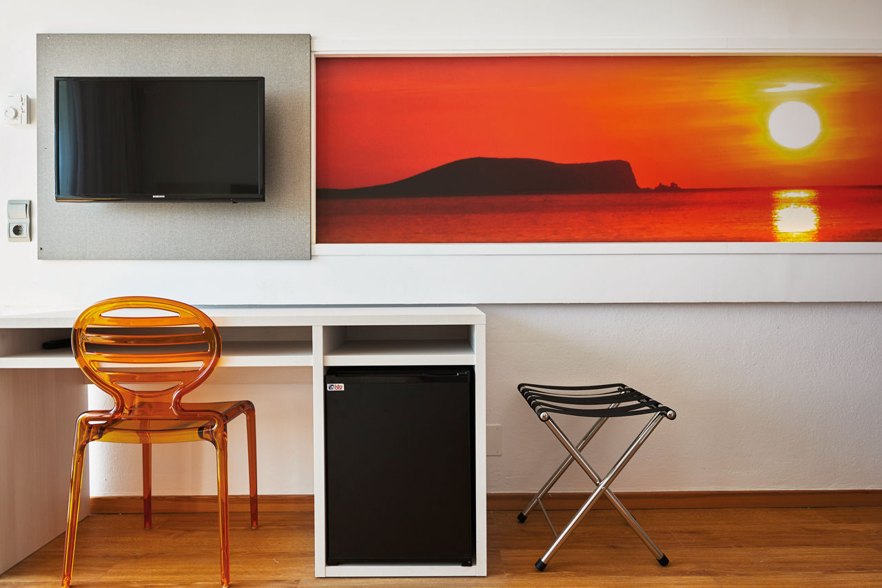 The family-run Hotel Abrat is decorated in a bright and modern style. The rooms feature large bathrooms and excellent views. Set in an ideal location in a peaceful area, but within easy reach of all the action San Antonio has to offer, the hotel has broad appeal and attracts both couples and families. Families will enjoy the friendly atmosphere, plus there is a small sandy beach just a short walk away. Couples looking for a relaxing break but wanting to enjoy San Antonio by night will also enjoy this hotel. Located at the end of the sunset strip, you don't have to walk far to famous bars like Cafe Mambo, in fact you can enjoy the stunning sunset views from the hotel's rooftop terrace!Double rooms sleep up to 3 adults and have bathroom containing a bath with shower attachment, air conditioning, flat screen television, fridge, kettle and balcony. Room upgrade options are also available.