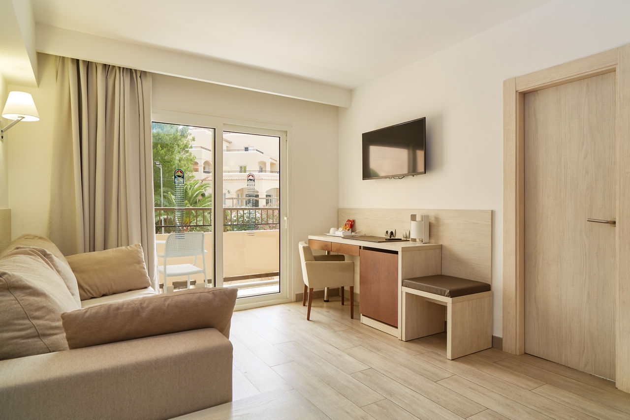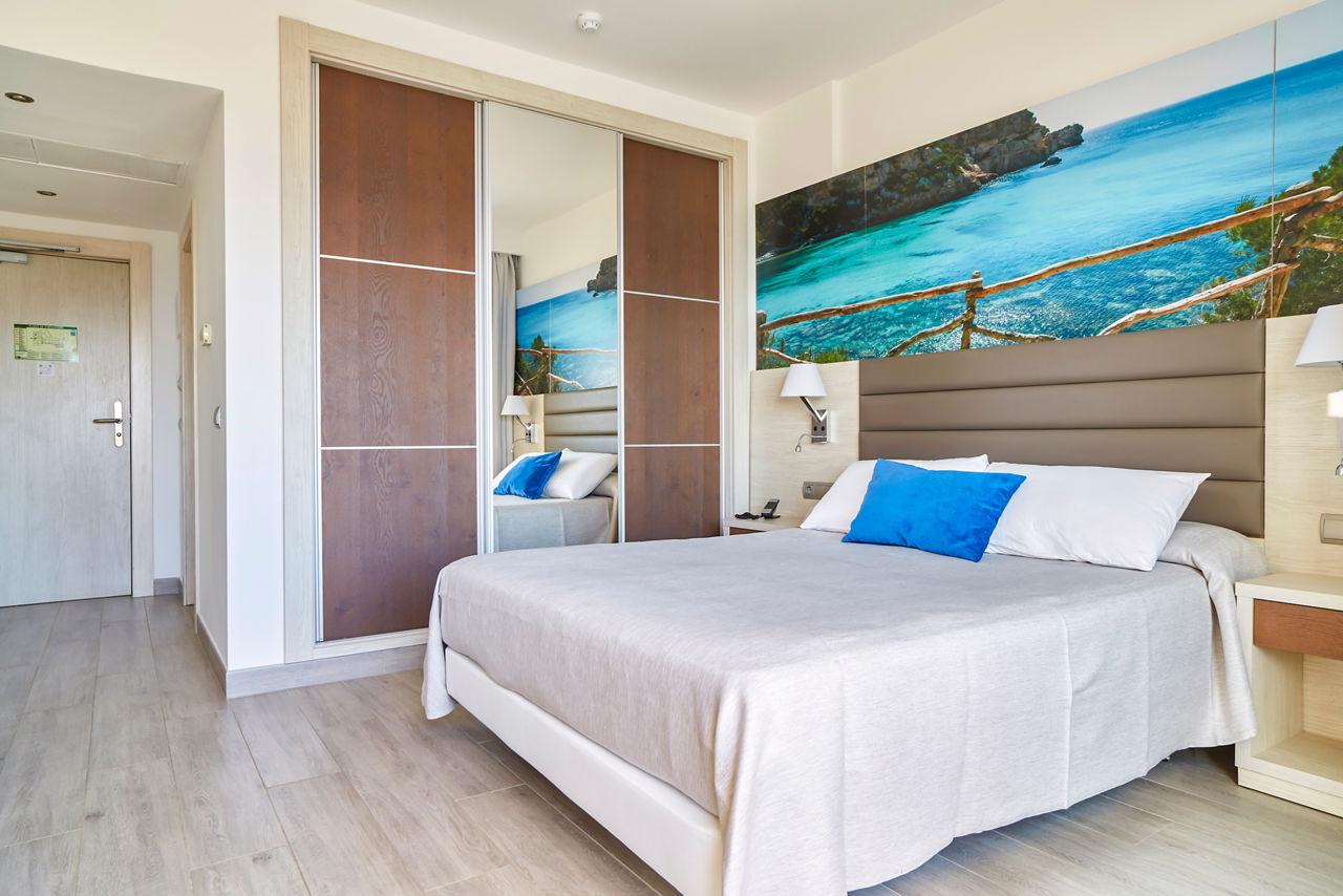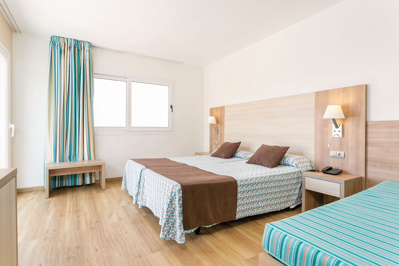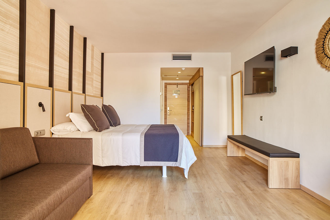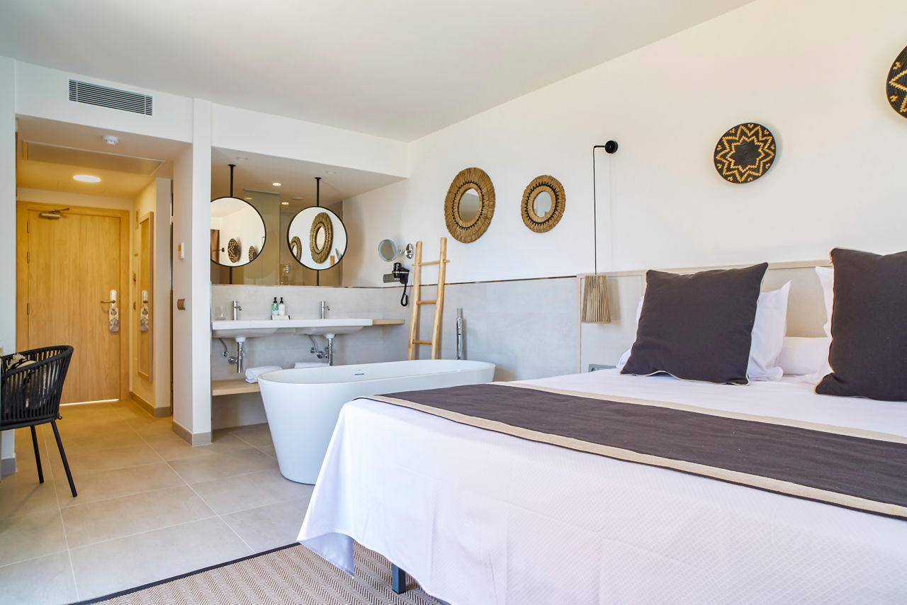 The Invisa Figueral Resort is a spacious property spread across two blocks. This large resort boasts spectacular views of the bay of Playa Es Figueral from its hillside location and a short walk downhill will bring you to a beautiful sandy beach. All the ingredients for a great holiday are here in resort including a range of room types for all budgets, a host of activities and facilities across the two hotels that kids, couples and families will love. The Pirates? Island water activity zone is a wonderful way for kids of all ages to spend the day, while adults have their own chill out area as well as an adults only bar area. The Invisa Figueral Resort is perfect for a fantastic All Inclusive holiday in Ibiza!Double and Twin rooms sleep up to 3 adults and 1 child and have bathroom containing a bath with shower attachment, air conditioning, hairdryer, flat screen television, fridge, kettle and a balcony or terrace. Premium and Premium Family rooms sleep up to 3 adults and 1 child or 2 adults and 2 children, all have the same facilities but have been refurbished and have walk in showers. Junior suites sleep up to 3 adults and 2 children, all have 2 flat screen televisions, new furnishings, and a coffee making machine. Sea View rooms and Gran Premium Family rooms sleep up to 4 adults and 2 children are also available. Please note: guests can be located in either parts of the hotel.