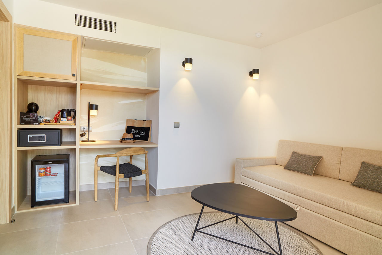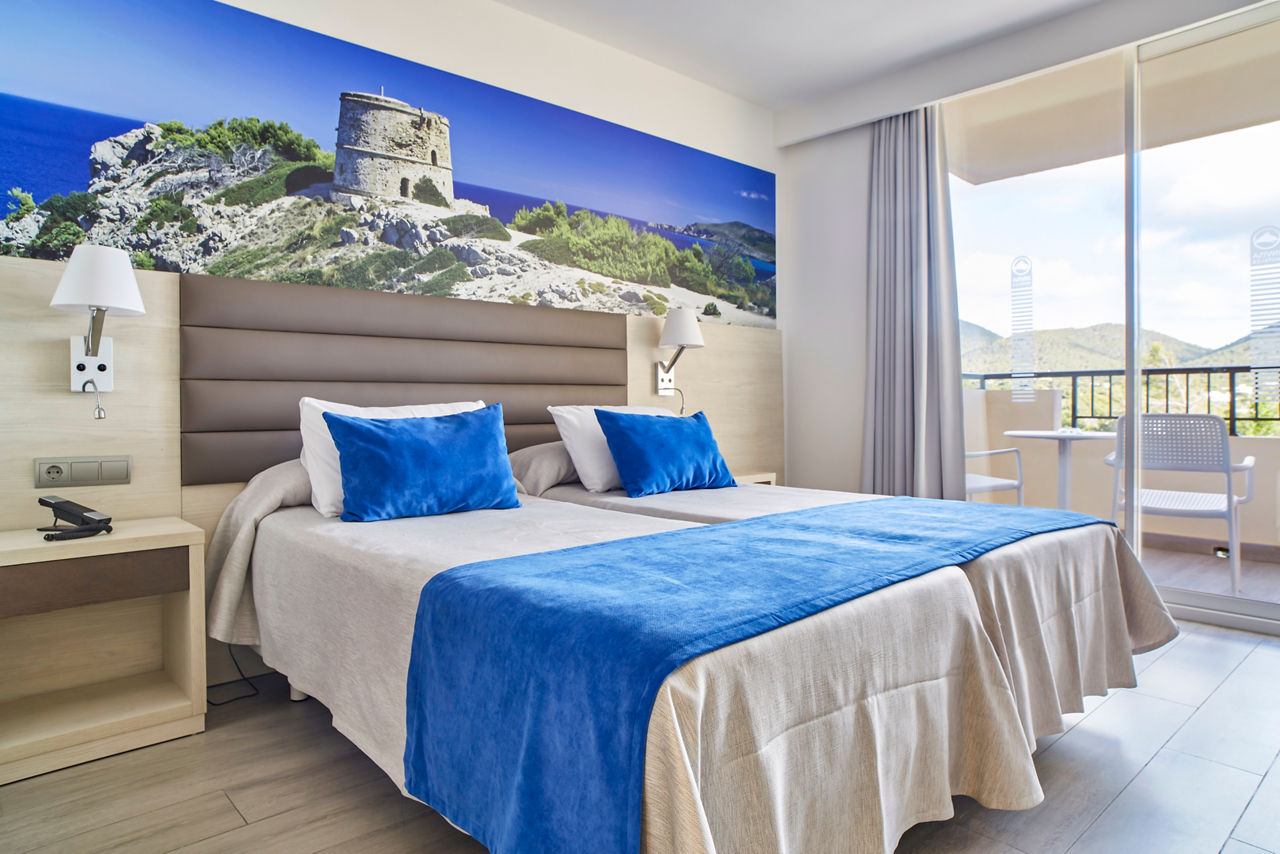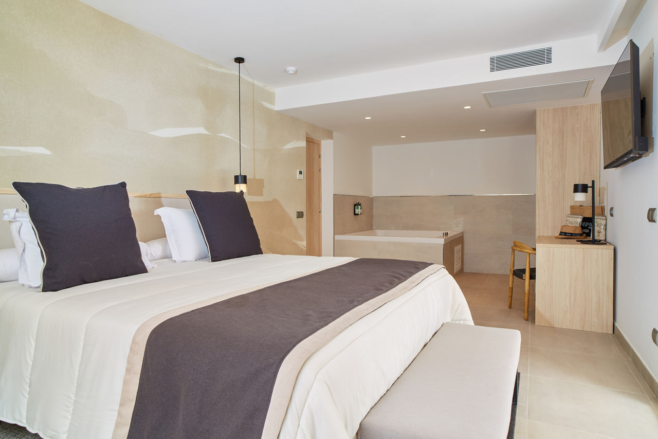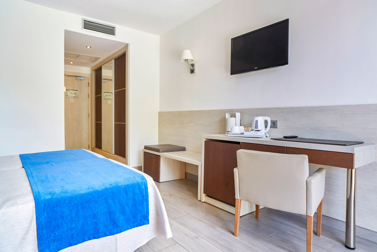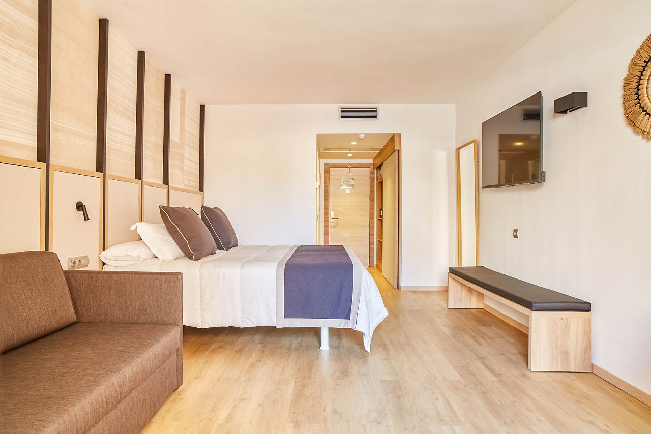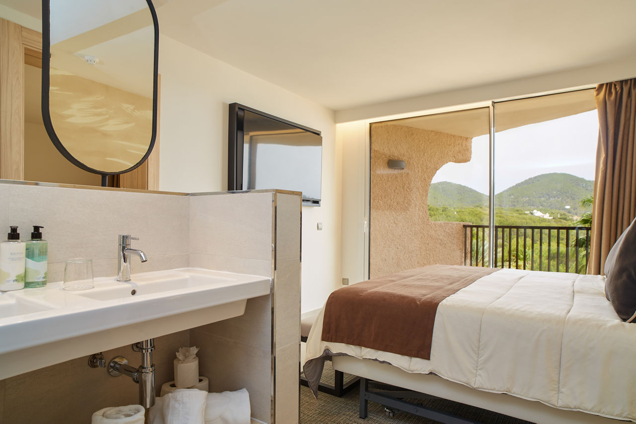 The Invisa Figueral Resort is a spacious property spread across two blocks. This large resort boasts spectacular views of the bay of Playa Es Figueral from its hillside location and a short walk downhill will bring you to a beautiful sandy beach. All the ingredients for a great holiday are here in resort including a range of room types for all budgets, a host of activities and facilities across the two hotels that kids, couples and families will love. The Pirates? Island water activity zone is a wonderful way for kids of all ages to spend the day, while adults have their own chill out area as well as an adults only bar area. The Invisa Figueral Resort is perfect for a fantastic All Inclusive holiday in Ibiza!Double and Twin rooms sleep up to 3 adults and 1 child and have bathroom containing a bath with shower attachment, air conditioning, hairdryer, flat screen television, fridge, kettle and a balcony or terrace. Premium and Premium Family rooms sleep up to 3 adults and 1 child or 2 adults and 2 children, all have the same facilities but have been refurbished and have walk in showers. Junior suites sleep up to 3 adults and 2 children, all have 2 flat screen televisions, new furnishings, and a coffee making machine. Sea View rooms and Gran Premium Family rooms sleep up to 4 adults and 2 children are also available. Please note: guests can be located in either parts of the hotel.
