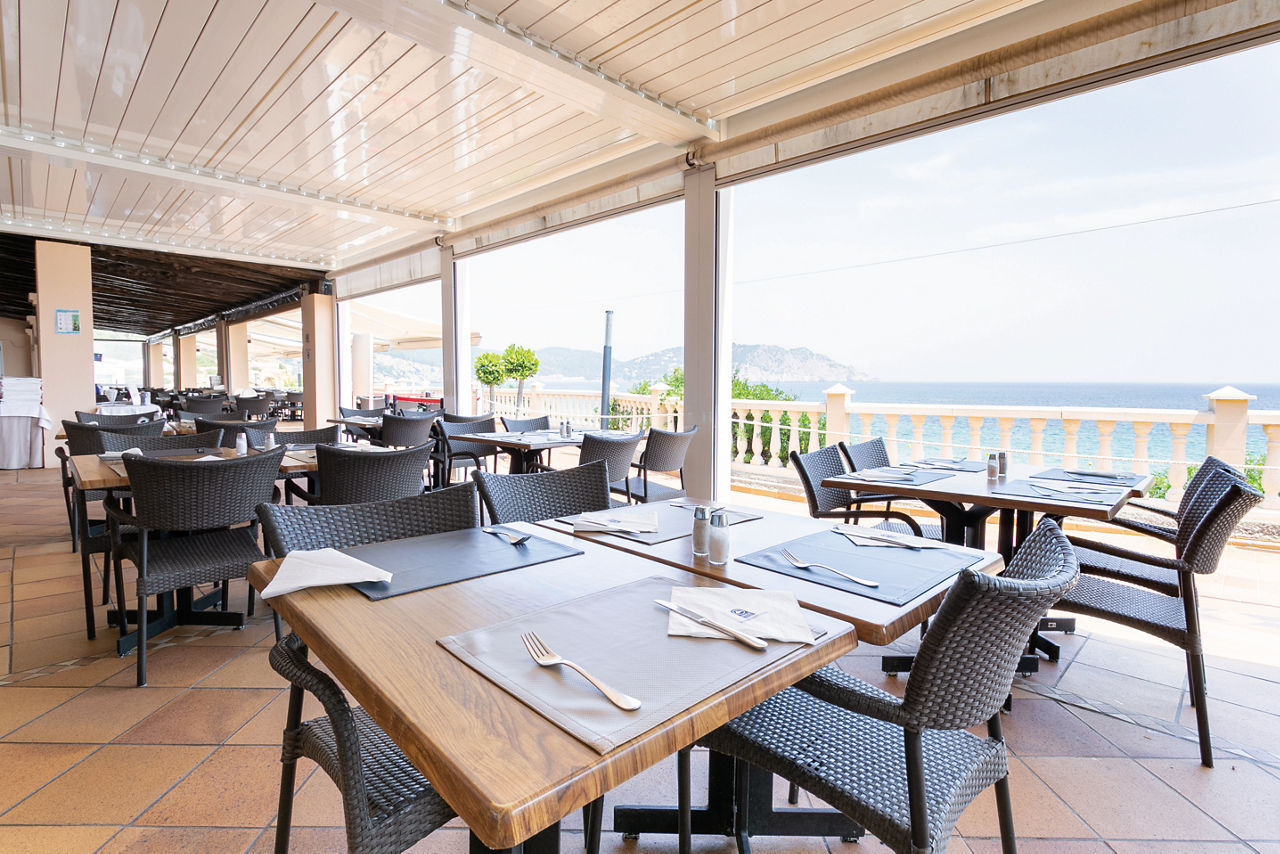 Set on a hillside. 200m from the beach. 100m downhill from Playa Es Figueral resort centre. There is a local bus service in operation to Santa Eulalia 5 times a day*.Eating And Drinking