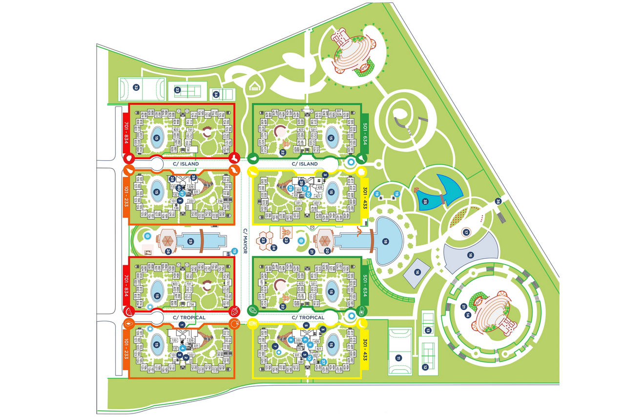 10 outdoor swimming pools. 4 children's pools. Children's splash park. 2 outdoor whirlpools.