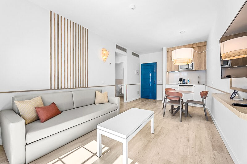 If you?re after a great-value holiday to Lanzarote, look no further than THB Tropical Island. Pick your spot next to one of 15 pools, including five children?s pools, for endless days of fun in the sun. A variety of rooms are available with apartments perfect for couples and interconnecting apartments ideal for families. All boast a delightful terrace so you can take in the stunning views. There are two splash parks and excellent daily entertainment to keep the little ones happy! And you?ll also find an adults-only section and spa where you can indulge in revitalising treatments.One Bedroom apartments sleep up to 3 adults or 2 adults and 2 children and have full bathroom, hairdryer, air conditioning, lounge with sofa bed, satellite TV, kitchenette with fridge, microwave, 2 cooking rings, kettle, and balcony or terrace.
