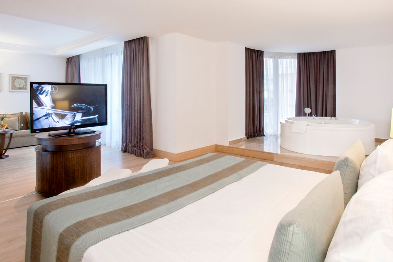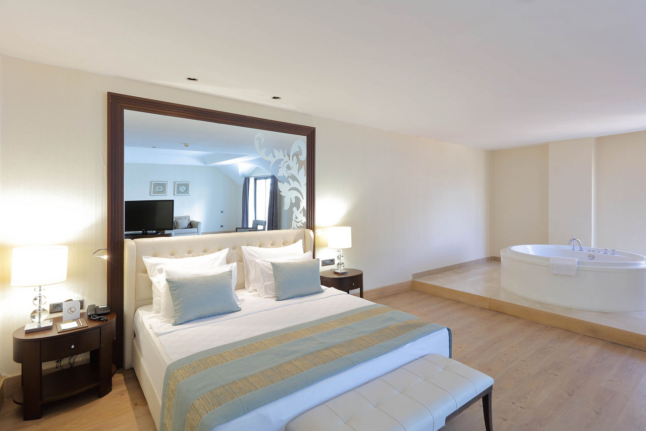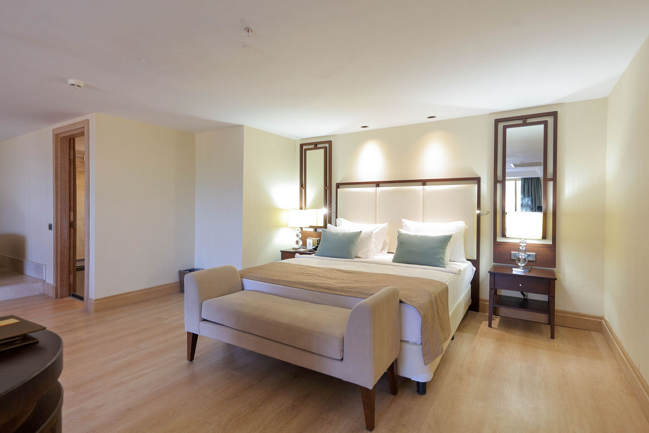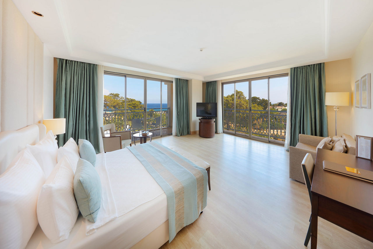Discover the ultimate beachfront escape at Juju Premier Palace, where stunning views and exceptional service meet the Mediterranean's crystal-clear waters. Guests can indulge in a variety of leisure options with multiple pools, including one featuring thrilling water slides for a splash of excitement. When it comes to dining, the hotel offers a selection of à la carte restaurants, catering to all tastes and culinary preferences. For those seeking relaxation and rejuvenation, the hotel's spa facilities provide a peaceful sanctuary to unwind and refresh. Juju Premier Palace truly has something for every age, offering fun-filled activities for children, relaxation for adults, and everything in between to ensure a perfect family getaway.Deluxe room with Land view sleep up to 2 adults and 2 children and have bathroom containing a shower or bath with shower attachment, air conditioning and Balcony. Room upgrade options and Sole Use rooms are also available.