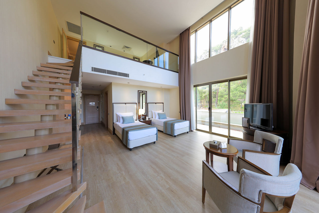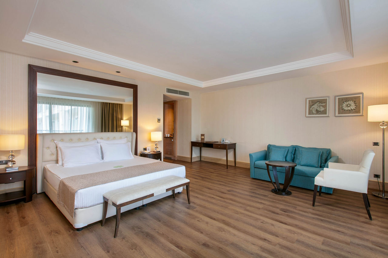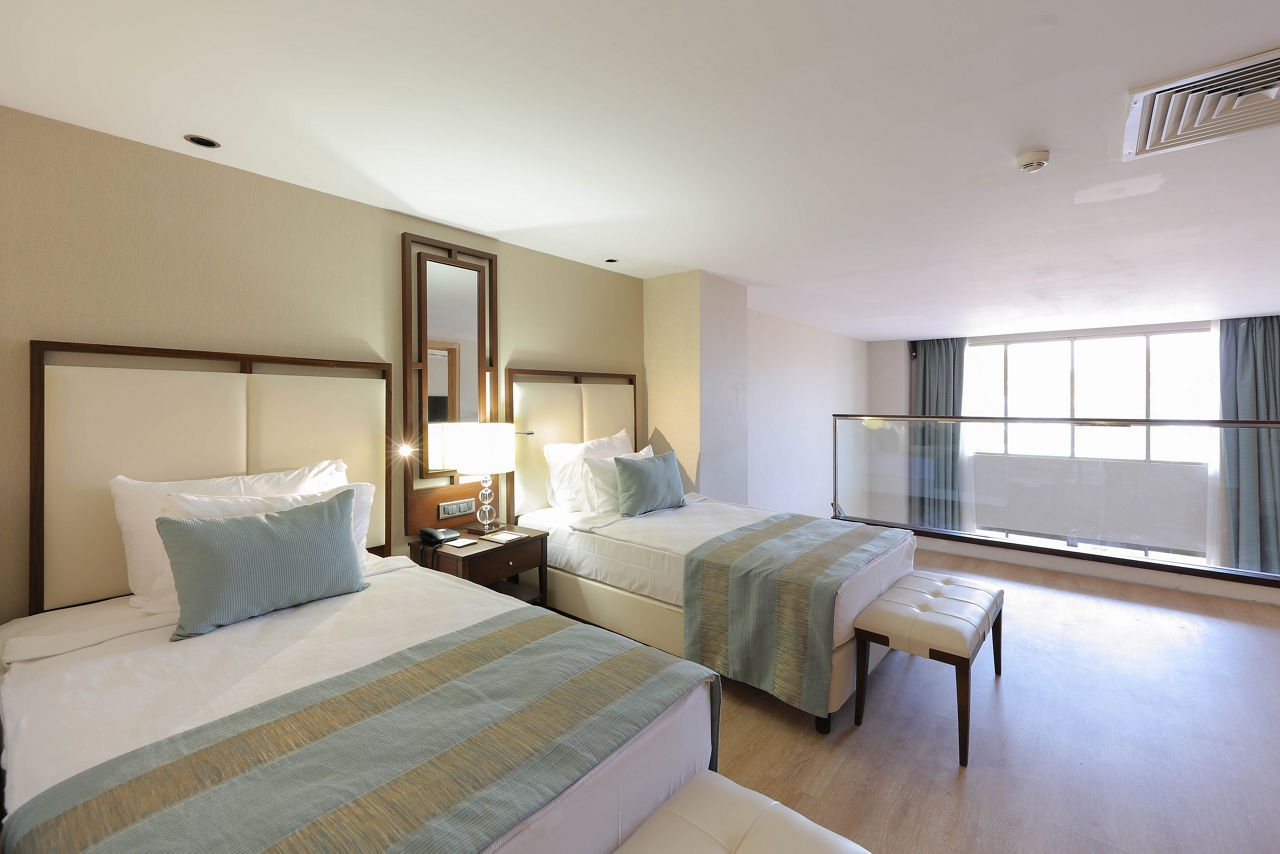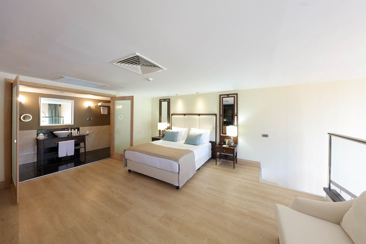 Discover the ultimate beachfront escape at Juju Premier Palace, where stunning views and exceptional service meet the Mediterranean's crystal-clear waters. Guests can indulge in a variety of leisure options with multiple pools, including one featuring thrilling water slides for a splash of excitement. When it comes to dining, the hotel offers a selection of à la carte restaurants, catering to all tastes and culinary preferences. For those seeking relaxation and rejuvenation, the hotel's spa facilities provide a peaceful sanctuary to unwind and refresh. Juju Premier Palace truly has something for every age, offering fun-filled activities for children, relaxation for adults, and everything in between to ensure a perfect family getaway.Deluxe room with Land view sleep up to 2 adults and 2 children and have bathroom containing a shower or bath with shower attachment, air conditioning and Balcony. Room upgrade options and Sole Use rooms are also available.
