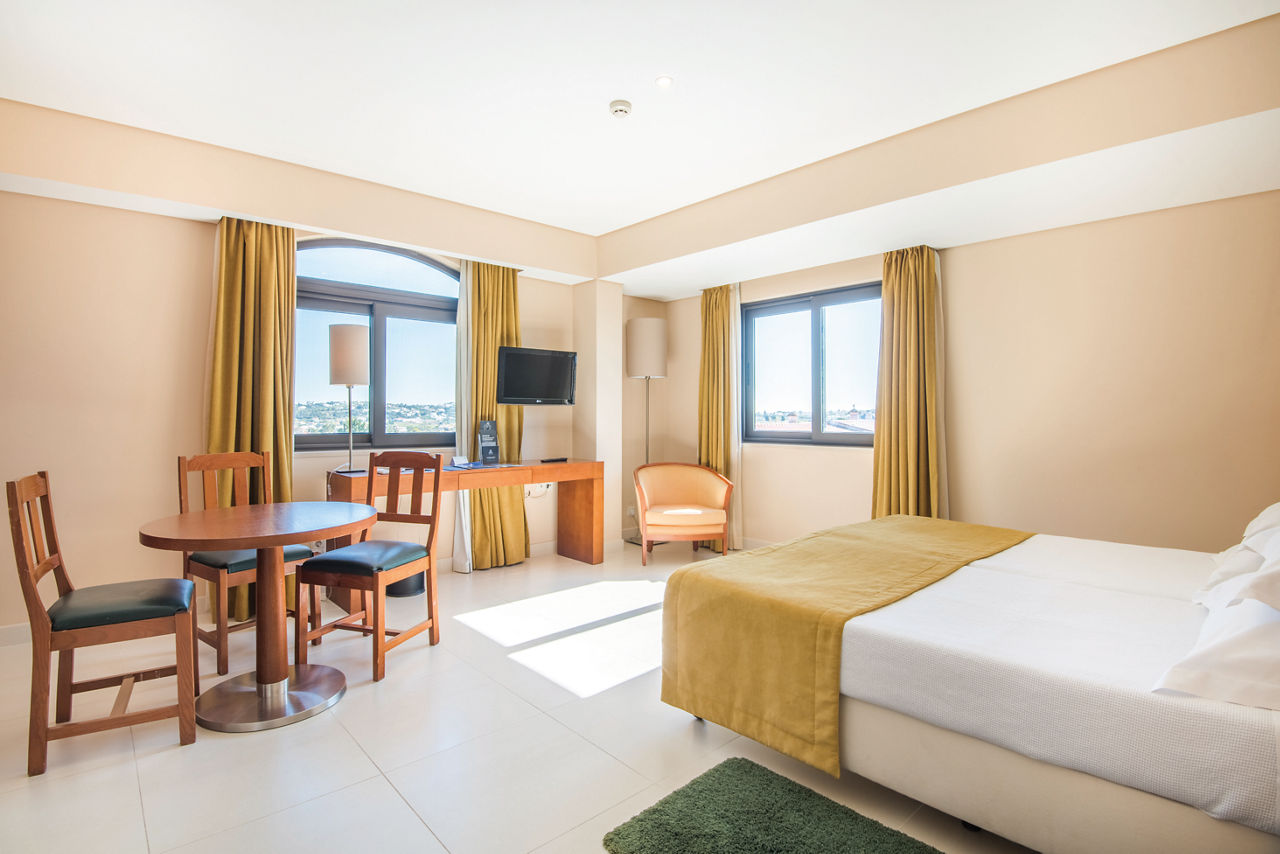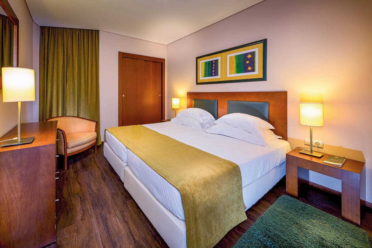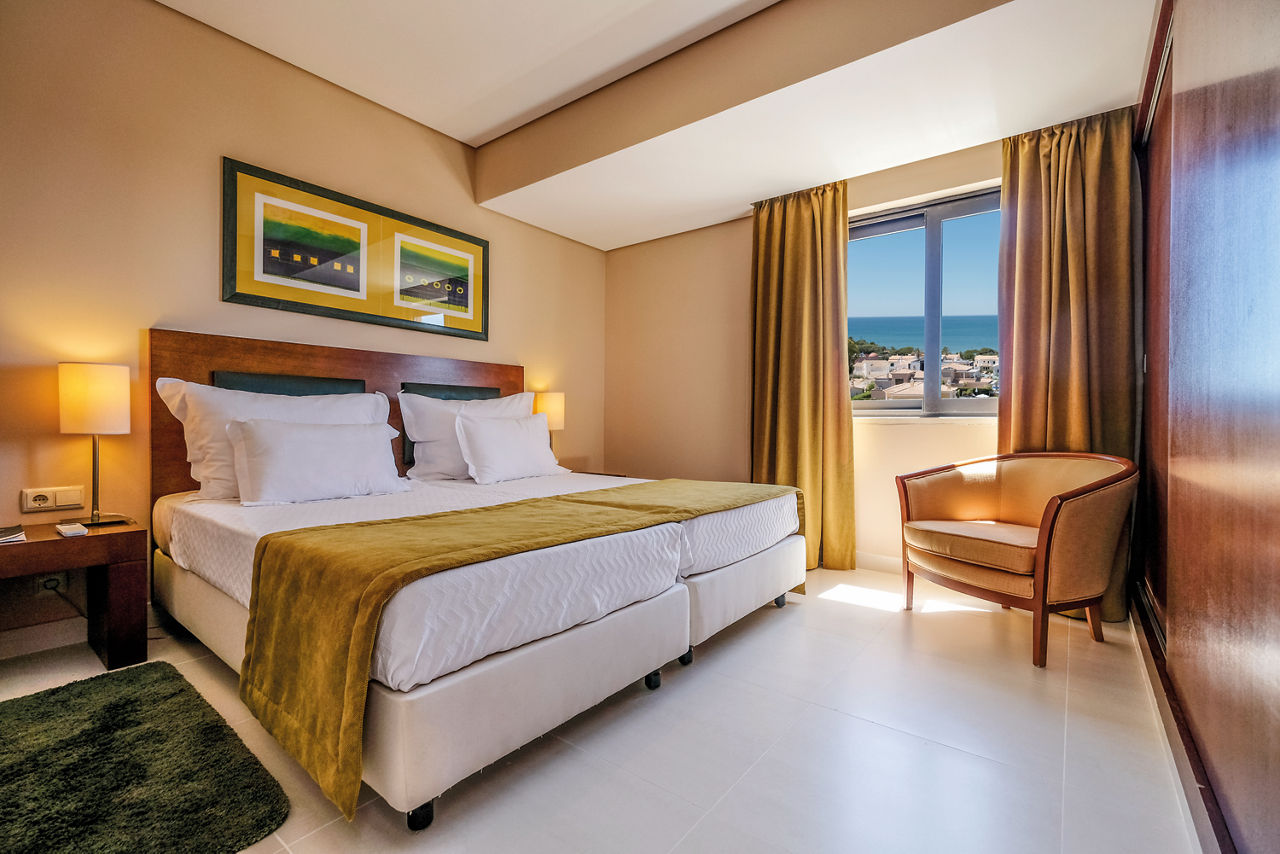 Vila Gale Atlantico is based in a relaxing spot on the Algarve with stunning ocean views and a fantastic atmosphere. With feel-good spa facilities to help you unwind, a gym for those who like to keep active and a children?s pool with slides, everyone is catered for at Vila Gale Atlantico. Spend days lazing around the kidney shaped pool, there?s a lounger with your name waiting! This property is perfect for sun-seekers, with a pleasant stroll taking you to a soft golden beach. Easy access to Albufeira by bus means there is also plenty of bars, eateries and sights just a short journey away too.Twin rooms sleep up to 3 adults and have bathroom containing a bath with shower attachment, air conditioning, hairdryer, flat screen television, fridge, microwave and balcony or terrace. Twin rooms with Sea Views and Single rooms are also available.