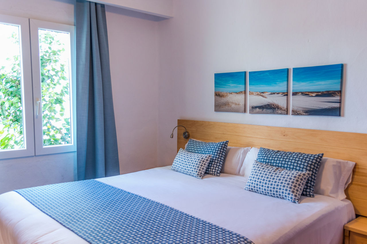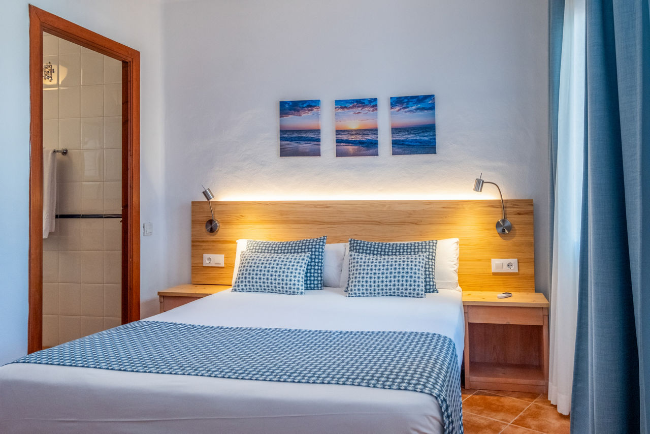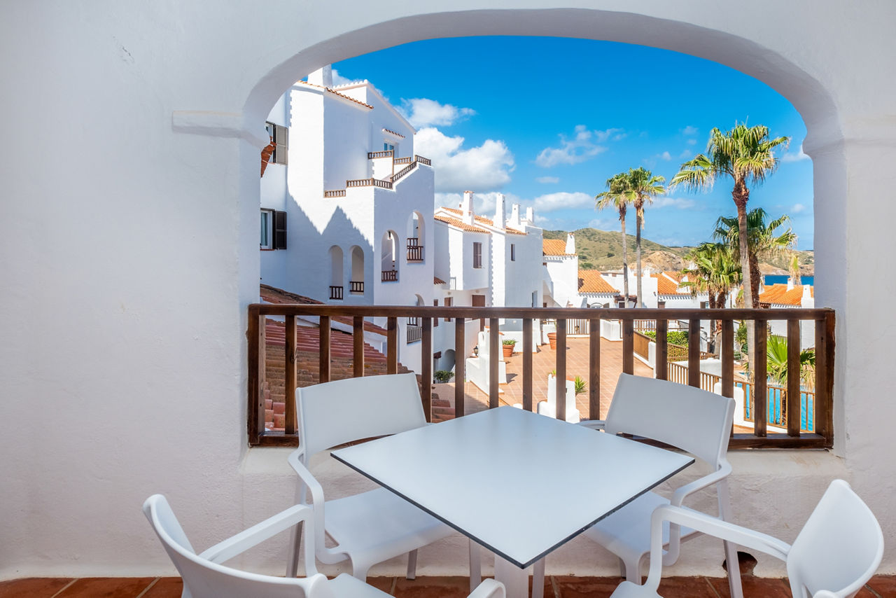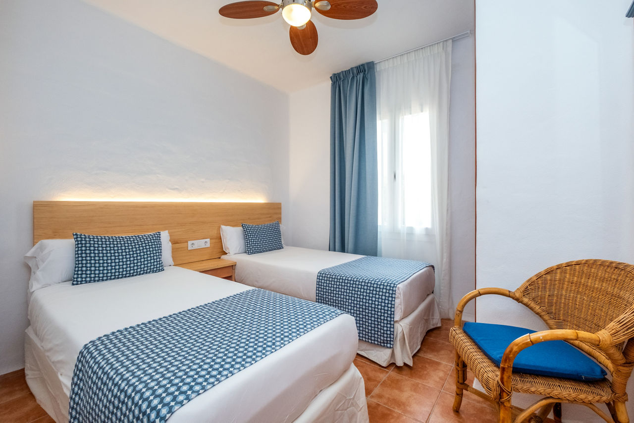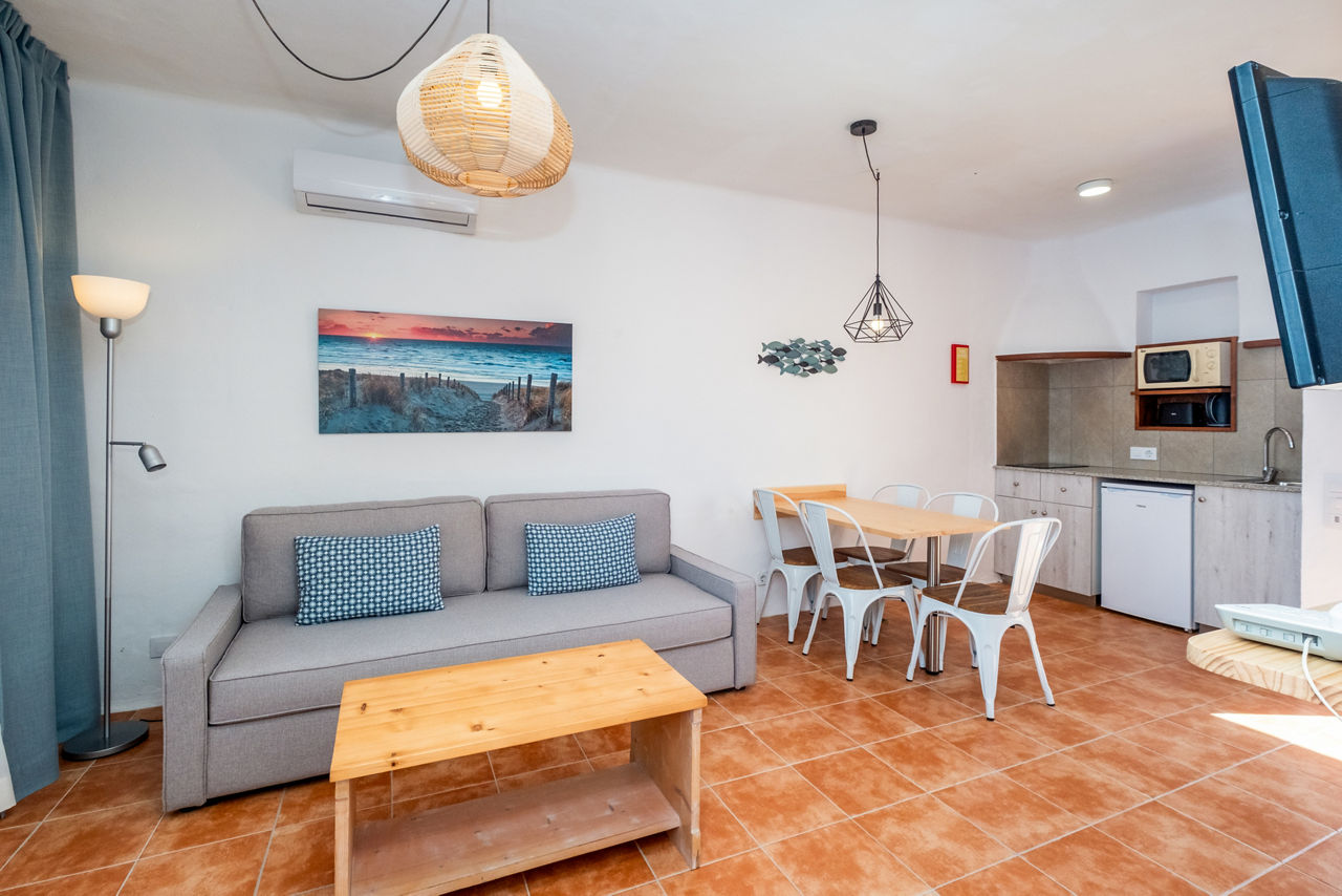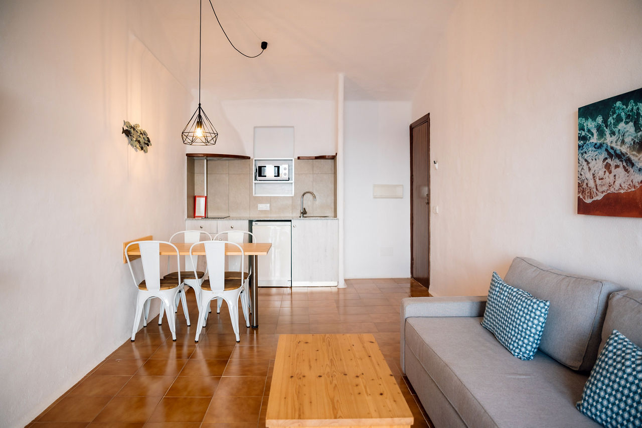 These well-equipped apartments set up in the style of a Menorcan village offer a relaxing holiday in the equally relaxing resort of Playa de Fornells. Families, couples and friends looking for flexible accommodation including a range of board options and a variety of apartments including larger three bedrooms, will love it here. Thanks to the cliff-side location you can enjoy far reaching views out to sea and of the stunning sunset from the chill-out area and outdoor dining area. If you book a superior apartment you can enjoy the sea view from your very own balcony. For those wanting to explore the beautiful island, meals can be taken at the sister hotels (reservation required), Isla Del Aire Apartments in Punta Prima or at Floramar Aparthotel in Cala Galdana. With all this on offer, you really can fit everything into your next holiday to Menorca!One bedroom apartments sleep up to 3 adults and 1 child and have a bathroom with shower, satellite TV, kitchenette, fridge and balcony or terrace. Two bedroom apartments sleep up to 4 adults and 2 children, 3 bedroom apartments with pool view sleep up to 6 adults and 1 child. Superior one and two bedroom apartments with sea view are also available.