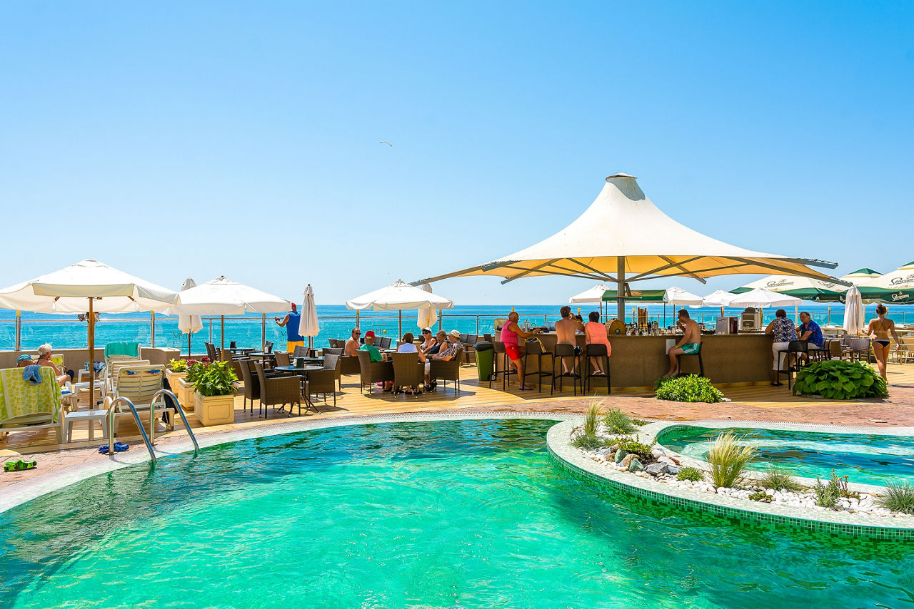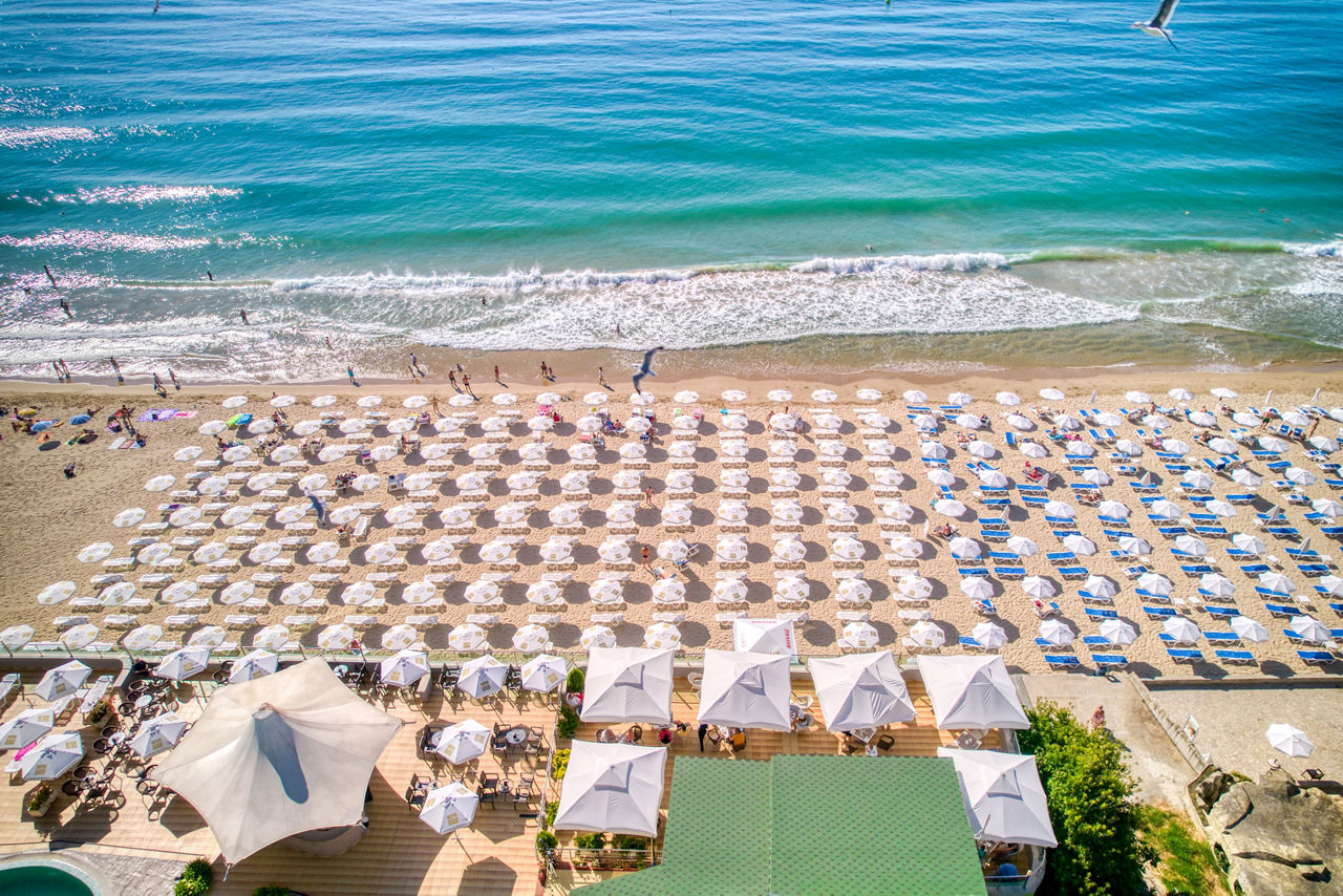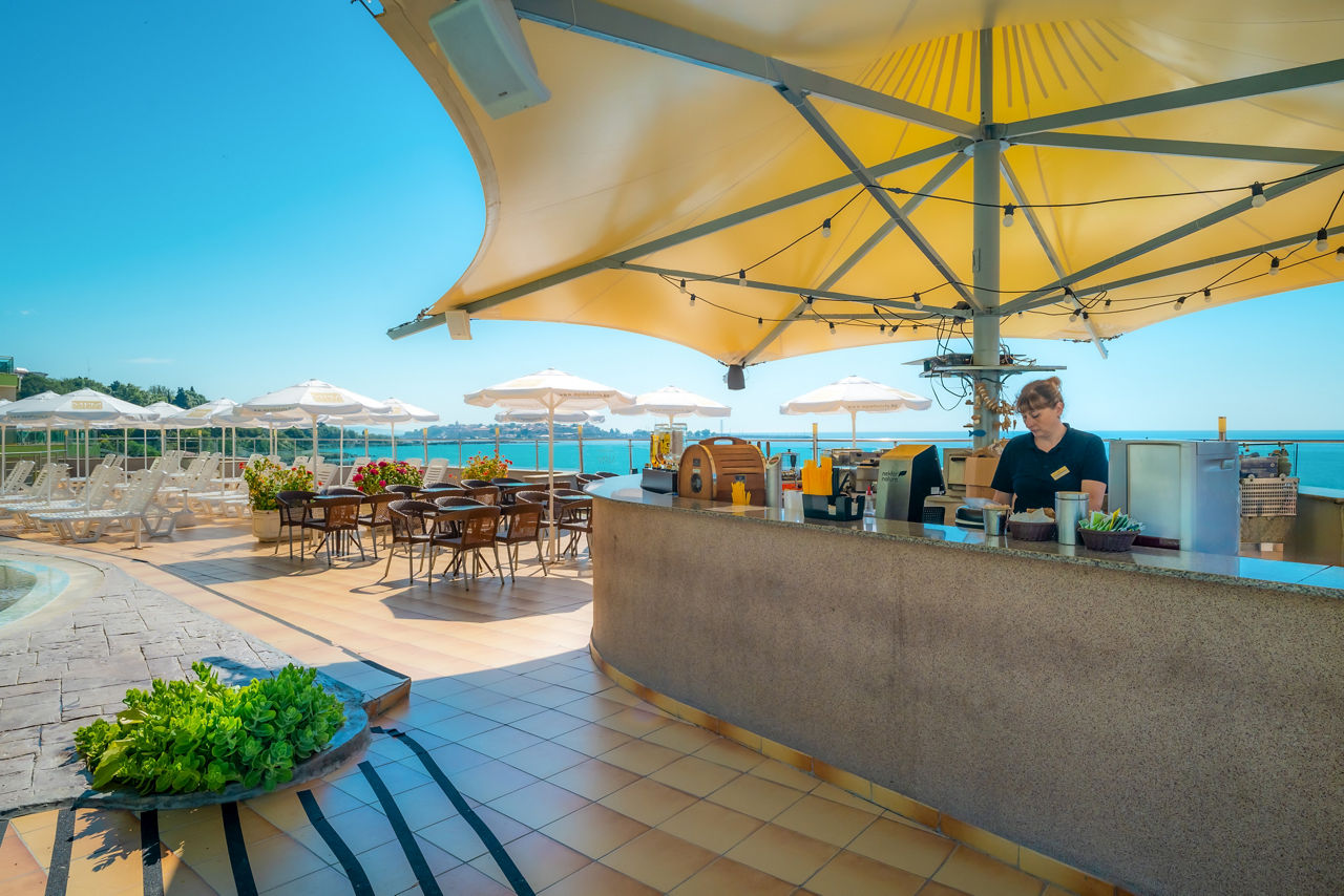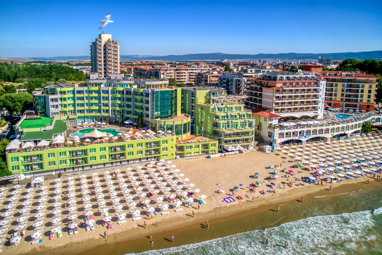 Beachfront. Private hotel section of beach (from 01 Jun, 2 sunbeds and 1 parasol complimentary per room). 500m from Nessebar resort centre. 1.4km from Nessebar Old Town.